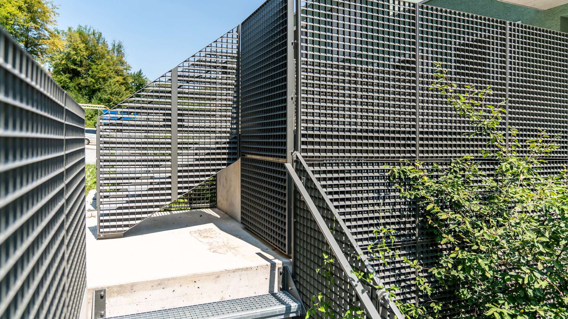 LUFTDURCHLÄSSIGE LAMELLENROSTE FÜR KINDER- UND JUGENDHEIM LAUFEN TECHNISCHE DATEN Materialien: Lamellenrost 45 Grad WinkelTragstab: 30/2 mmMaschenweite: 55,55 x 55,55 mmBeschichtung: eloxiert Das Kinder- und Jugendheim in Laufen wurde durch einen