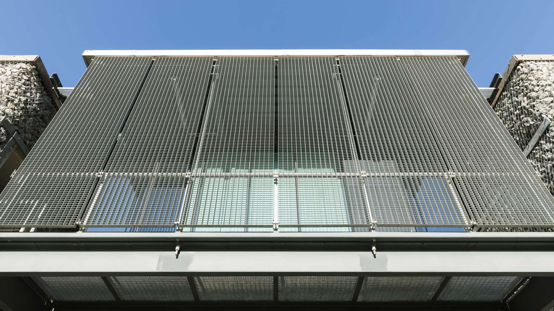 PRESSROSTE FÜR DIE ZUSCHAUERTRIBÜNE TECHNISCHE DATEN Materialien: Pressrost feuerverzinktMaschen: 44 x 133 mm und 66 x 133 mmRandeinfassung: Flachrand, teilweise 45 GradHöhe einteilig: bis zu 3 Meter Im Fussballstadion in