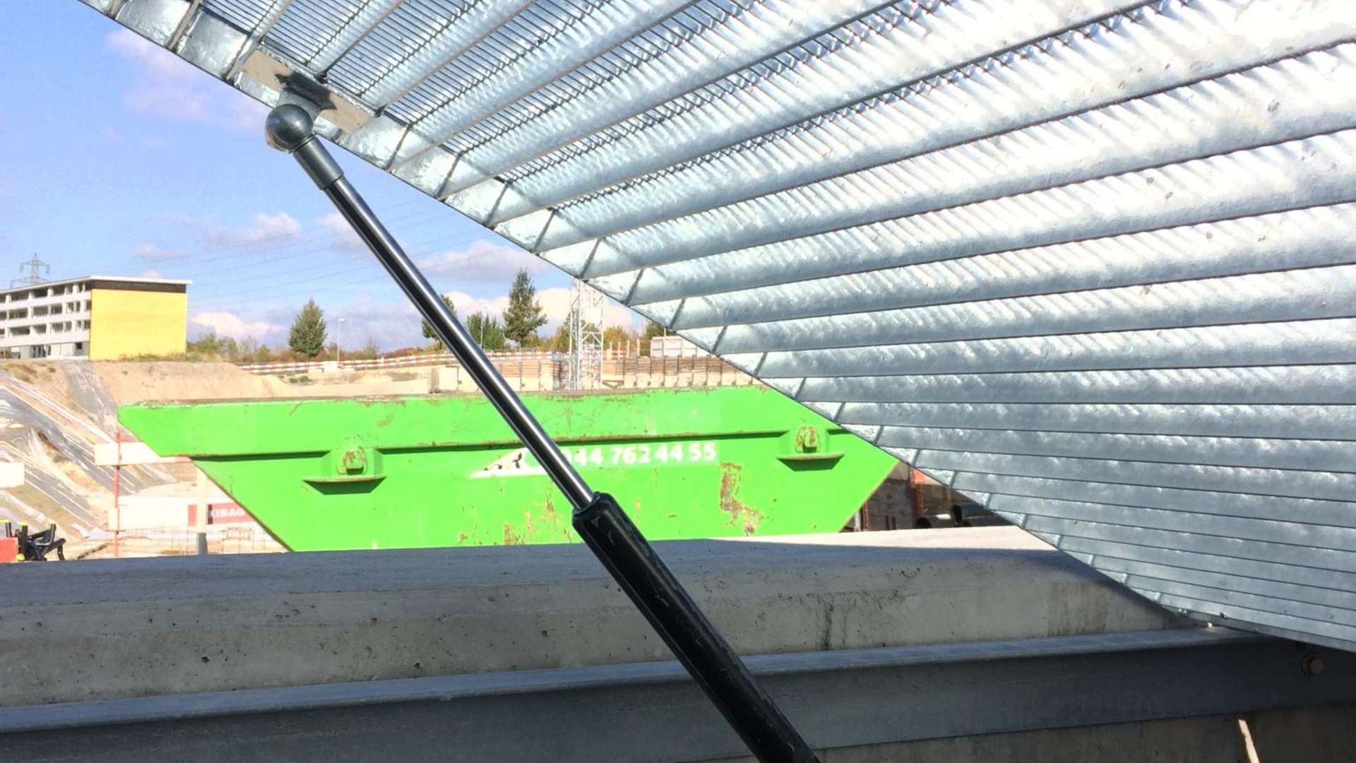 BEWEGLICHE GITTERROSTE TECHNISCHE DATEN Produkt: Pressroste Stahl feuerverzinktMaschenweite: 33 x 11 mmTragstab: 40/2Scharniere: 180 Grad klappbar, nach oben überstehend, angeschweisstGasfedern: 4 Für einen Treppenzugang in einem Schacht wurde eine bewegliche