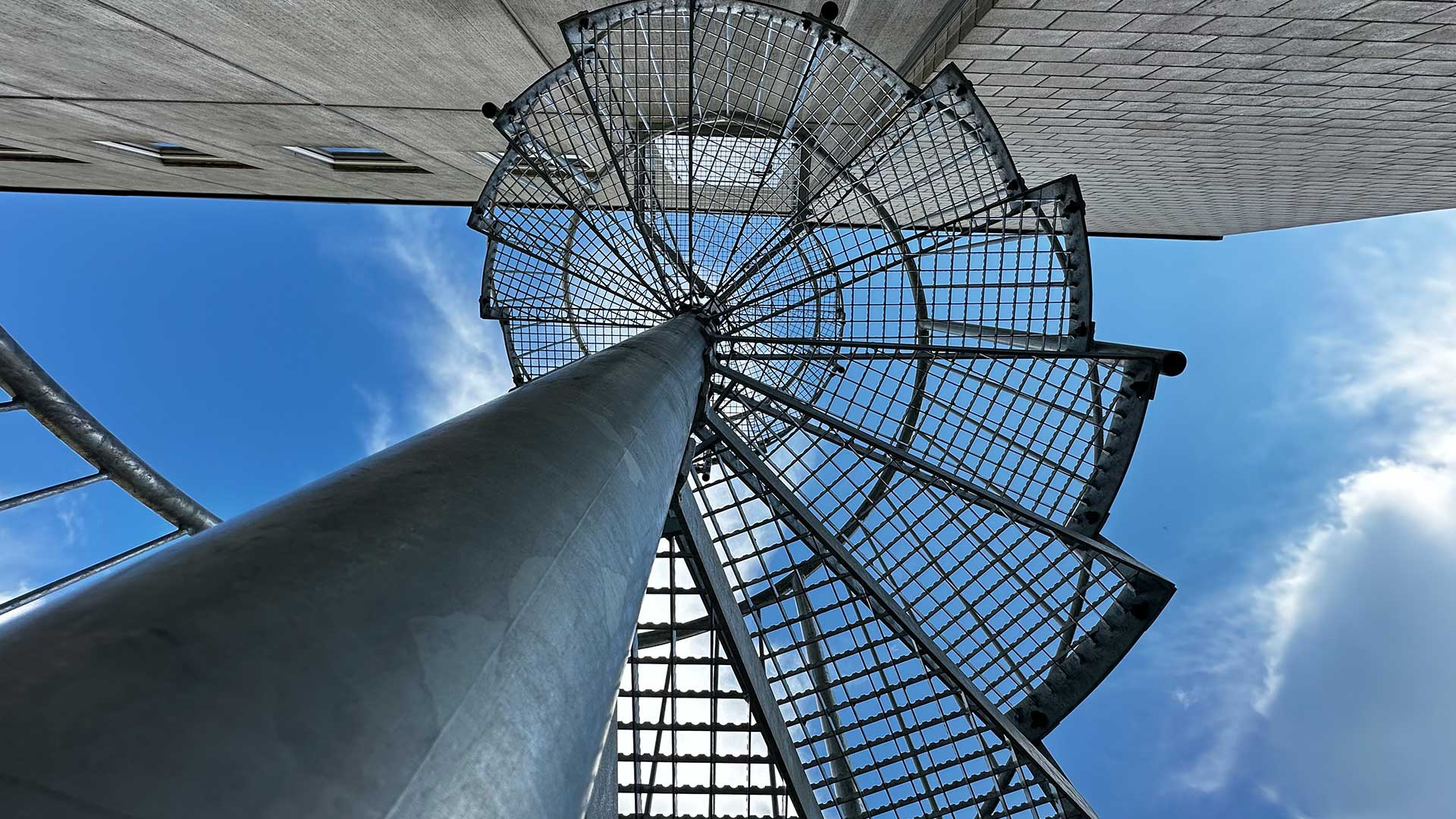 SPINDELTREPPE ALS DIREKTER ZUGANG ZUM GARTEN TECHNISCHE DATEN Material: 1 Systemspindeltreppen Stahl feuerverzinktBeschichtung: IGP 591TA90050A10Höhe: ca. 3000 mmDurchmesser: 2331 mmLaufbreite: 1200 mmStufen: 15 Gleitschutz-GitterroststufenMaschenweite Stufen: 33 x 11 mmGeländer: C9