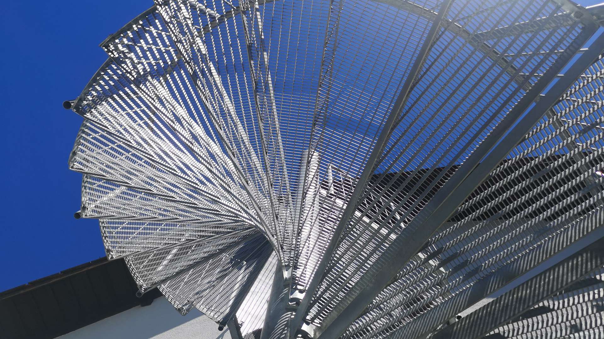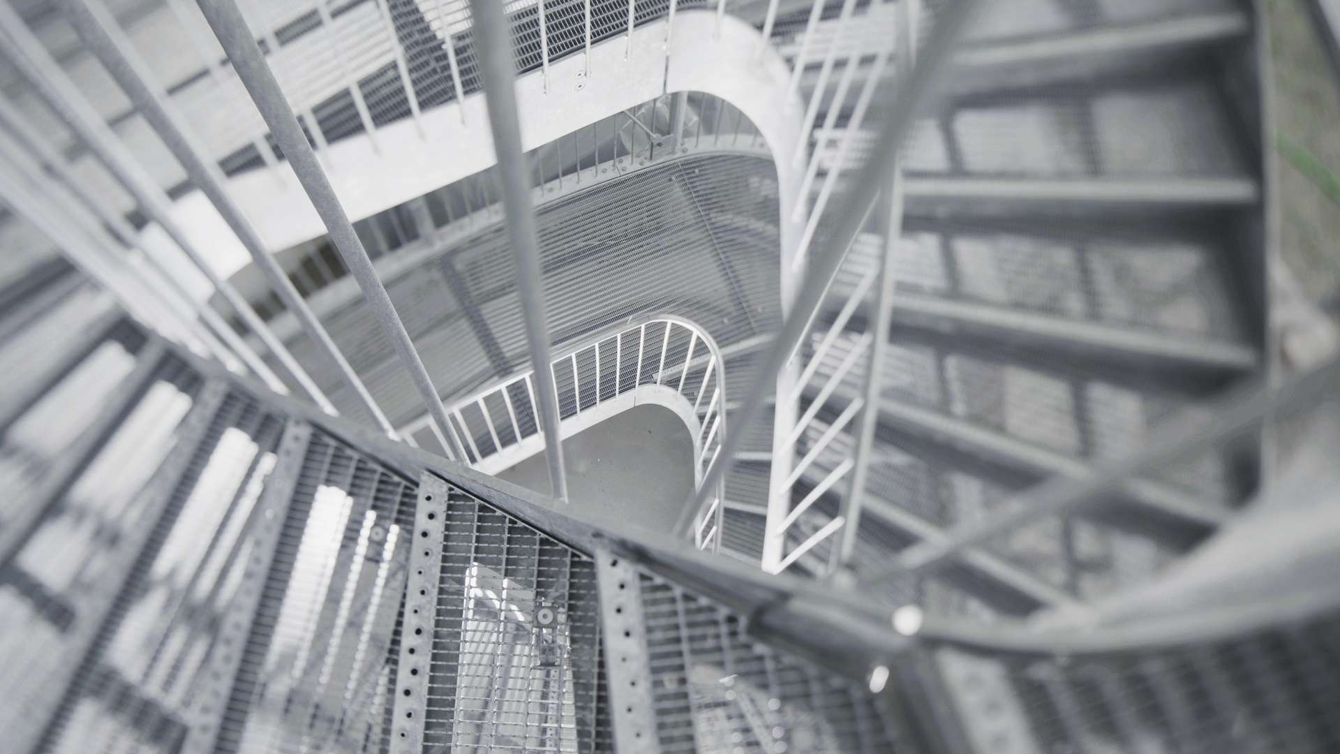 SPINDELTTREPPE ERMÖGLICHT DIREKTEN ZUGANG ZUM GARTEN TECHNISCHE DATEN Treppenstufen: 25 Gleitschutz-Gitterroststufen 33×11 mm (davon 20 Spindelstufen) Höhe inkl. Standrohr: 4,55 mDurchmesser: 2,2 mGeländer: Staketengeländer mit aufgesetztem Handlauf V2ABeschichtung: Geländer und Aussenwange
